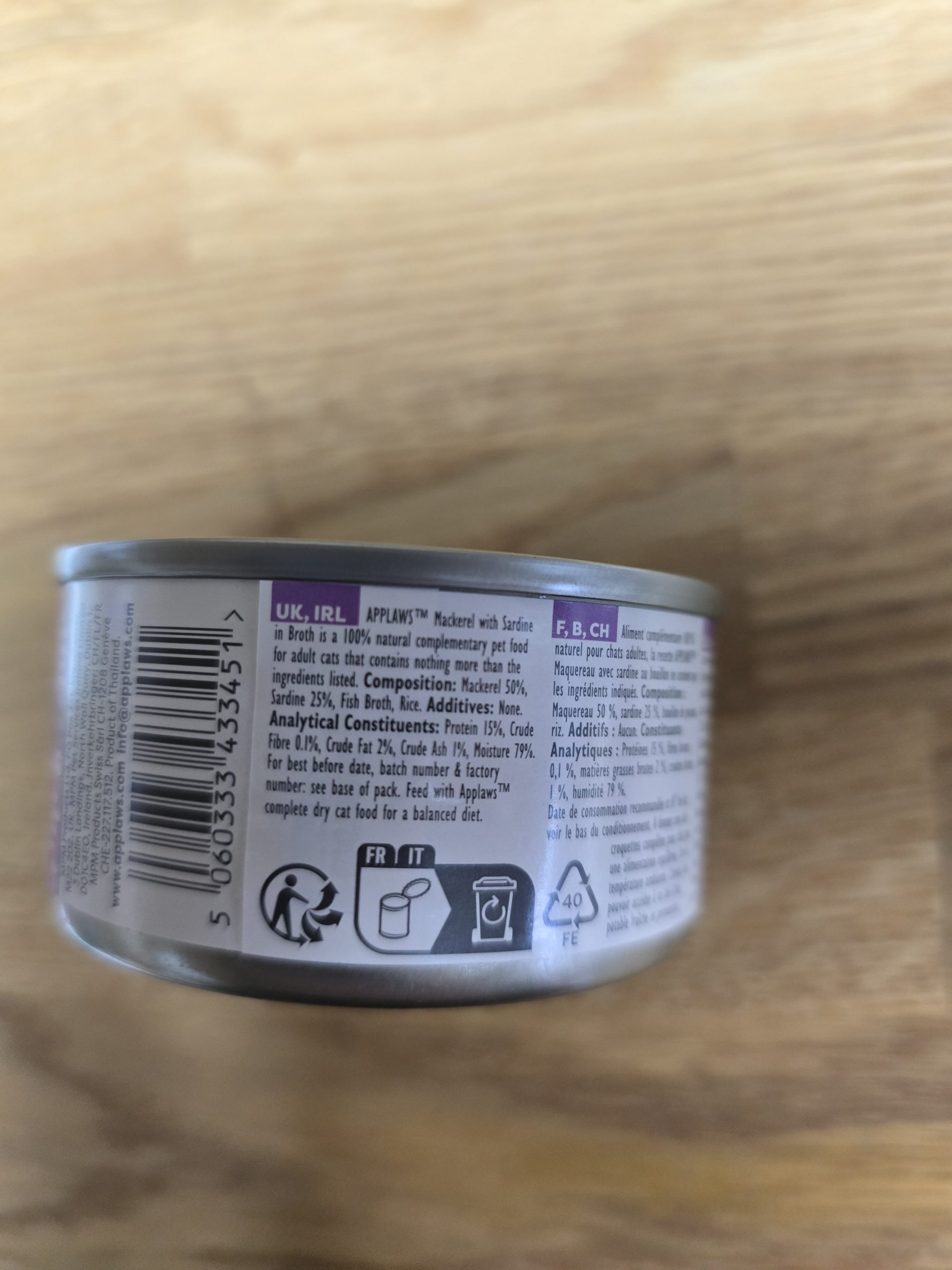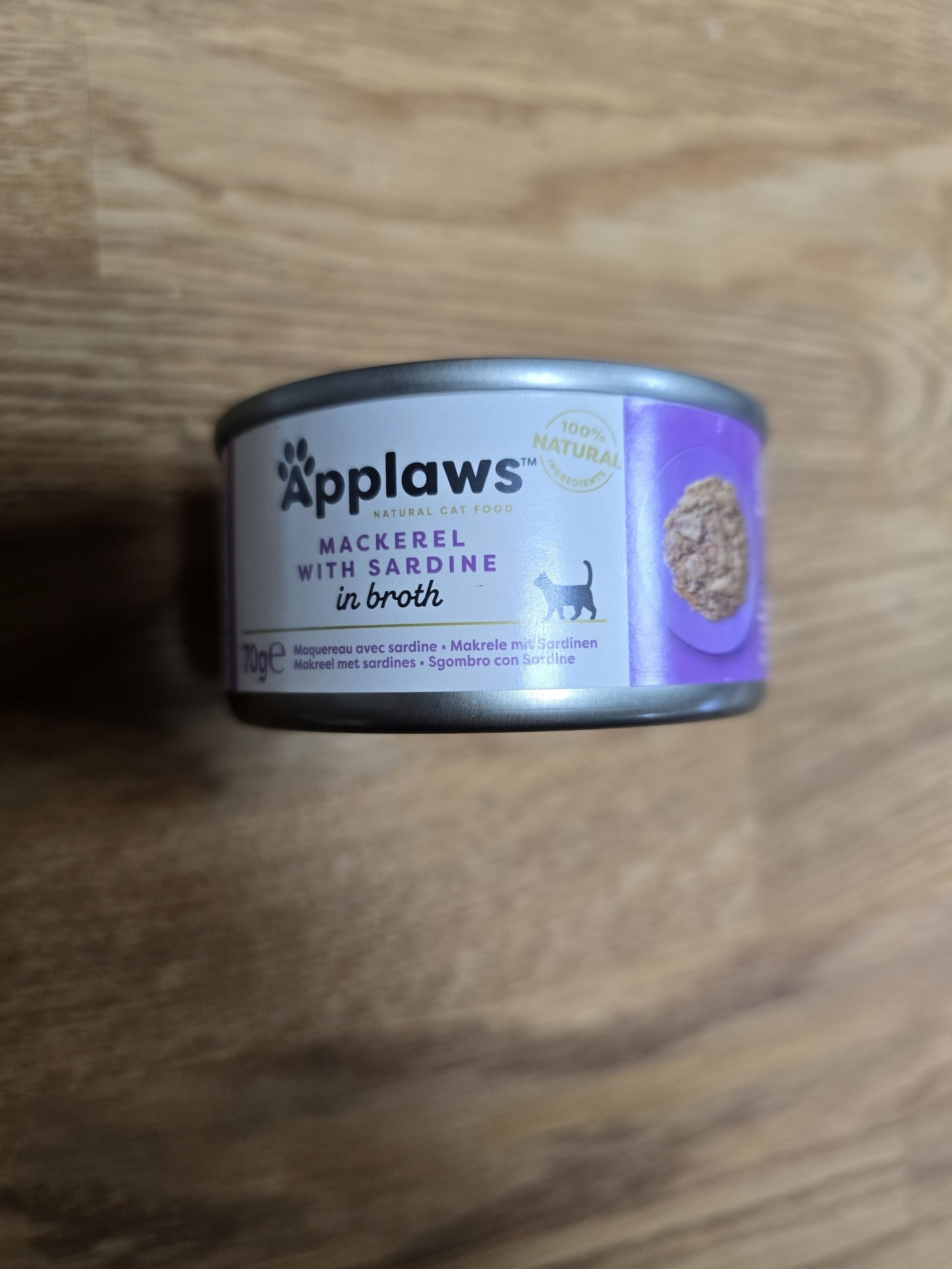 Applaws Mackerel with Sardine in Broth is a 100% natural complementary pet food for adult cats that contains nothing more than the ingredients listed.