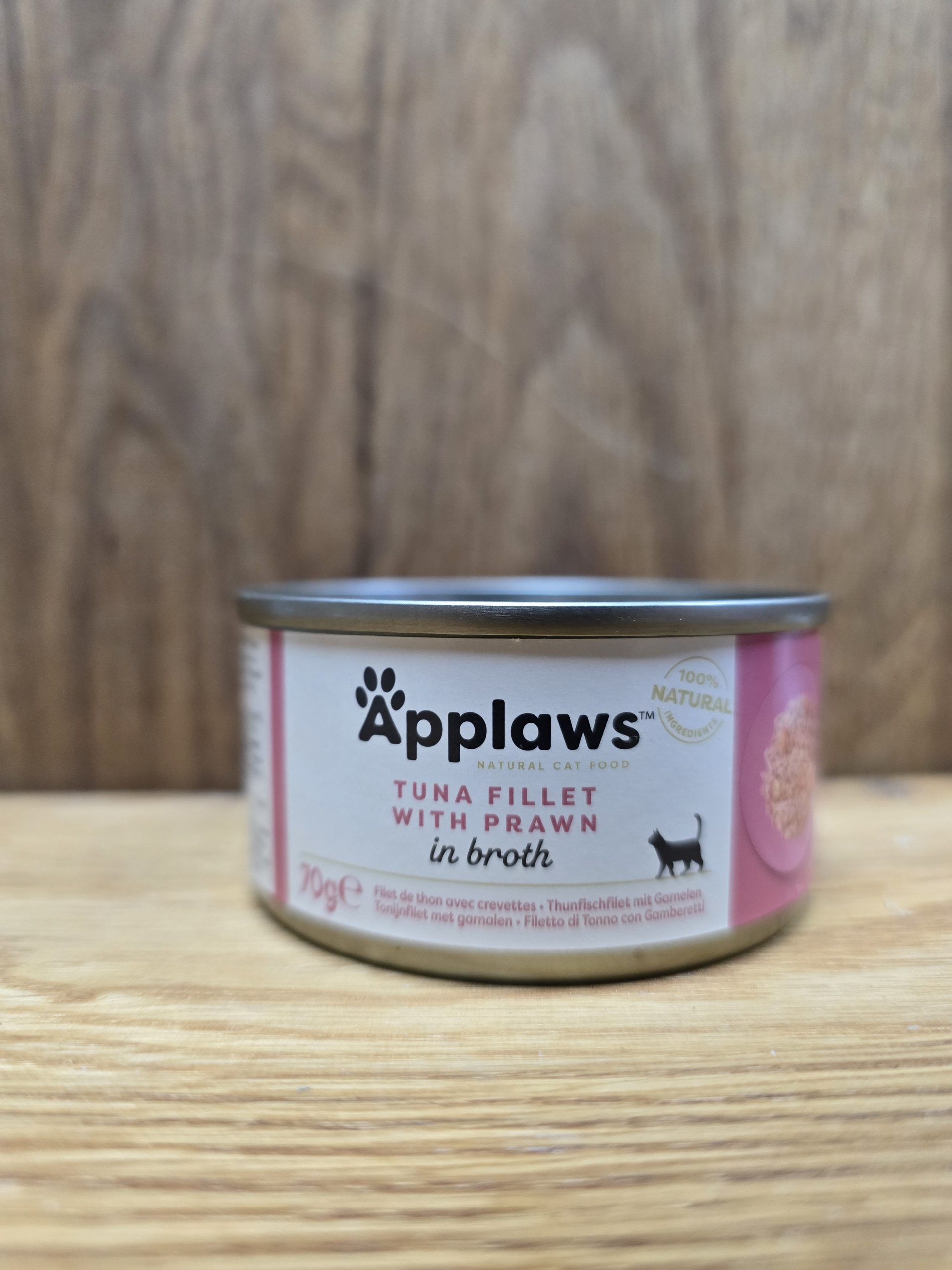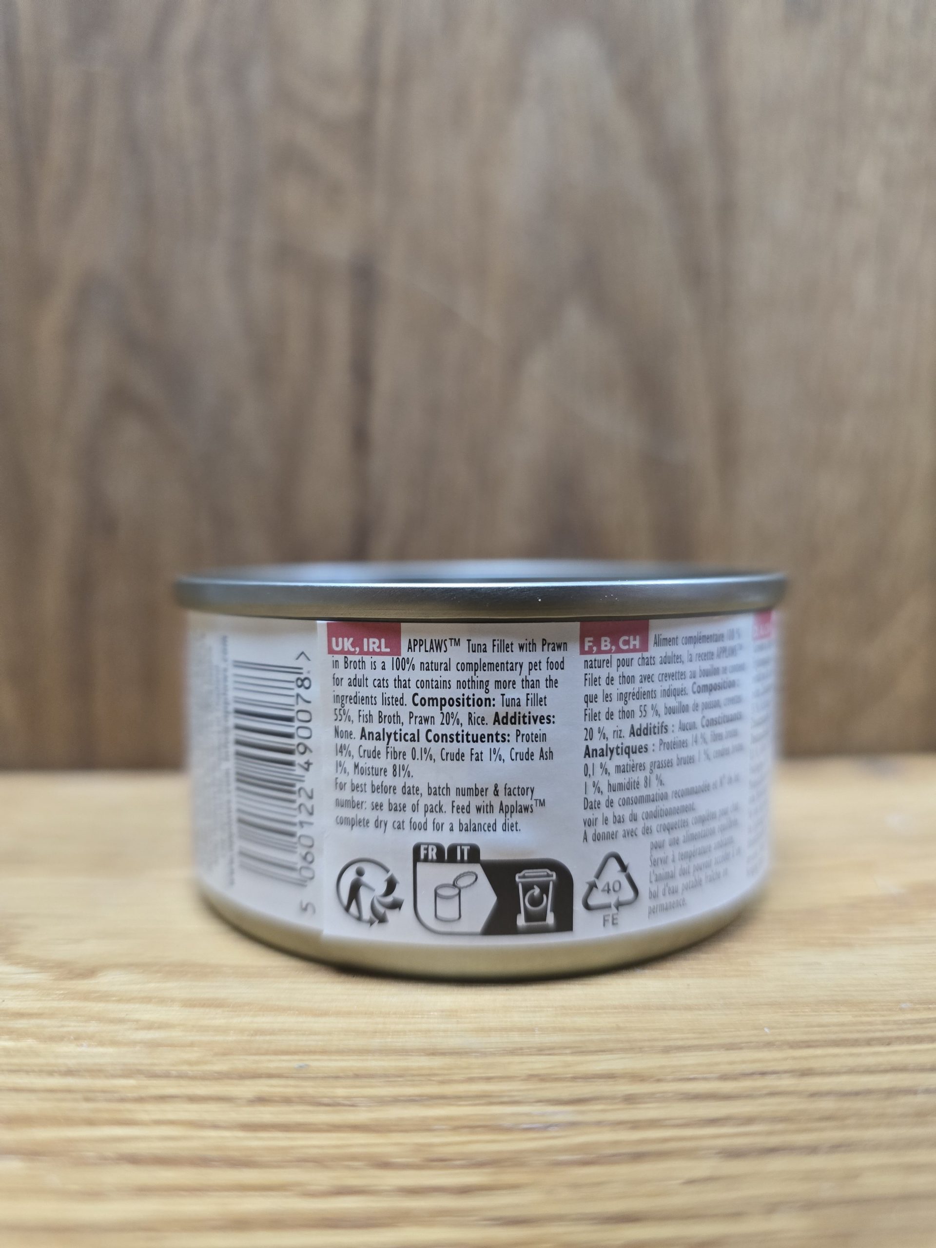 Applaws Tuna Fillet with Prawn in Broth is a 100% natural complementary pet food for adult cats that contains nothing more than the ingredients listed.