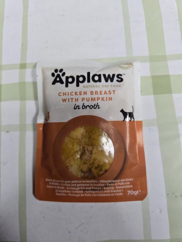 Applaws Chicken Breast with Pumpkin in Broth is a 100% natural complementary pet food for adult cats that contains nothing more than the ingredients listed.