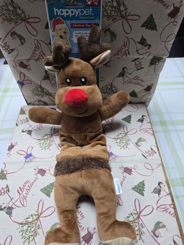 Plush stretchy dog toy with squeakers inside